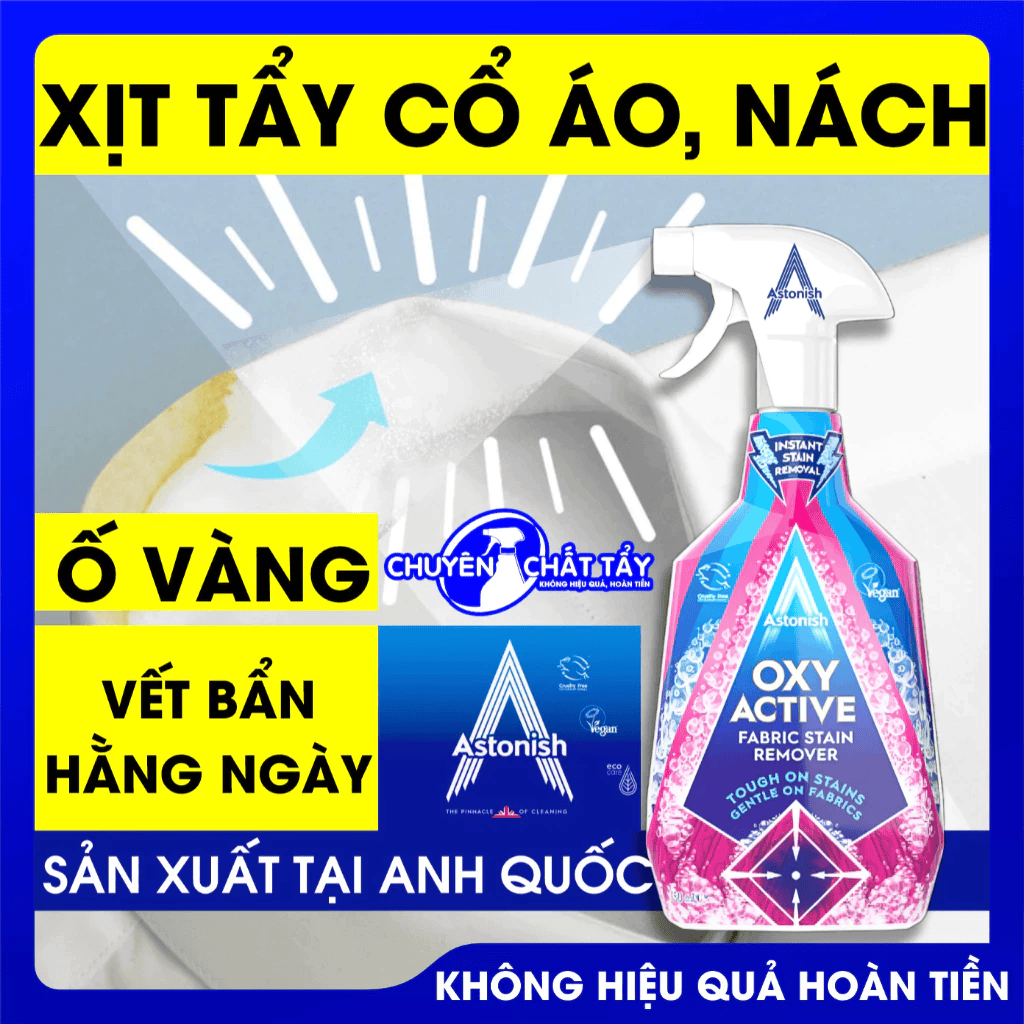 Bình xịt tẩy cổ áo và các vết bẩn trên vải Astonish C6910 750ml sản xuất tại Anh chuyên tẩy mồ hôi từ vùng nách, cổ và các vết bẩn khác cho quần áo cao cấp