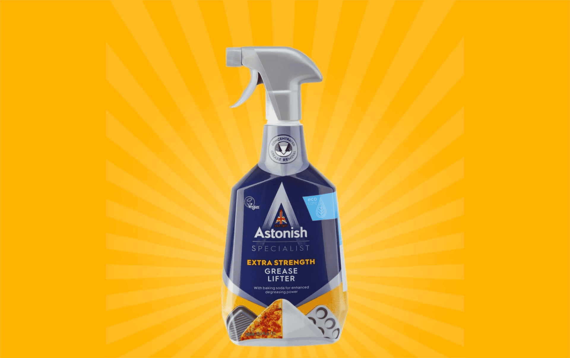 Bình xịt tẩy dầu mỡ & cháy khét Astonish C6750 sản xuất 100% tại Anh Quốc, theo phương thức đặc biệt để loại bỏ mạnh mẽ các vết bẩn dầu mỡ và những vết thức ăn bị cháy khét bám trên bề mặt các thiết bị nhà bếp. Chuyên dùng vệ sinh các bề mặt bếp gas/từ/hồng ngoại, tủ bếp, máy hút khói/hút mùi, mặt đá Ceramic, granite, sàn gạch men, bồn rửa, vòi nước, và lau kính ... Cũng có thể sử dụng xịt lên xoong nồi, chảo, chén bát...để tẩy dầu mỡ trước khi rửa lại bằng nước rử chén thông thường.