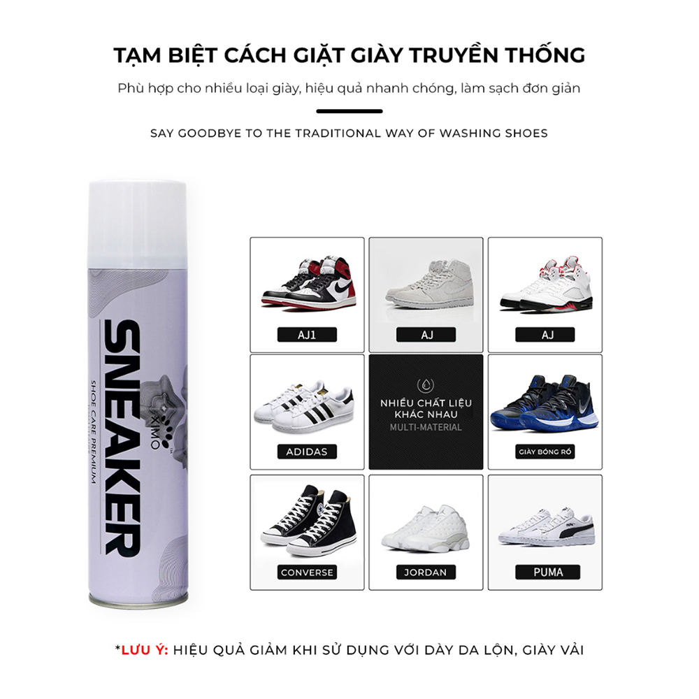 Vệ sinh, làm sạch cho giày luôn là điều khó khăn với mọi người. Bởi vậy, thương hiệu XIMO đem đến cho mọi người Chai Xịt Tạo Bọt Vệ Sinh Giày XIMO Cao Cấp. Khác với những chất tẩy rửa phổ biến mà chúng ta thường đem ra để vệ sinh giày luôn cho tiện như bột giặt, kem đánh răng,... Thì chai xịt tạo bọt vệ sinh giày XIMO có chức năng chuyên dụng cho việc vệ sinh giày, làm sạch giày với công thức và tỉ lệ chuẩn, phù hợp với đúng việc vệ sinh giày, giúp vệ sinh sạch hơn, nhanh hơn, không làm phai màu sắc, hỏng vải như những chất tẩy rửa ở trên.