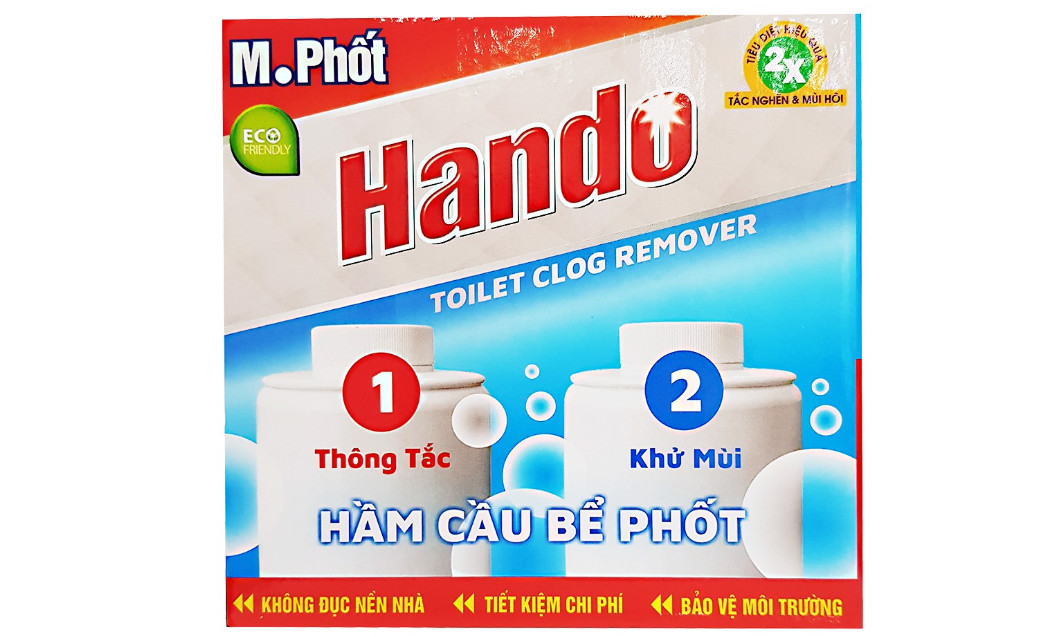 M.Phốt Hando là chuyên gia trong lĩnh vực thông tắc hầm cầu bể phốt. Với công thức vượt trội gồm hàng tỉ vi sinh vật trong mỗi gói M.Phốt sẽ khiến hầm cầu nhà bạn thông sạch chỉ sau 1 ngày mà không cần phải dùng đến xe hút, đục nền nhà...với chi phí lớn và vô cùng mất vệ sinh. Cách dùng: đổ gói bột vào vào hầm cầu giật nước cho trôi xuống, thế là xong. Gói 250gr dùng cho bể phốt dung tích trên 3 mét khối. Sản phẩm đủ tiêu chuẩn an toàn và chất lượng để xuất khẩu.