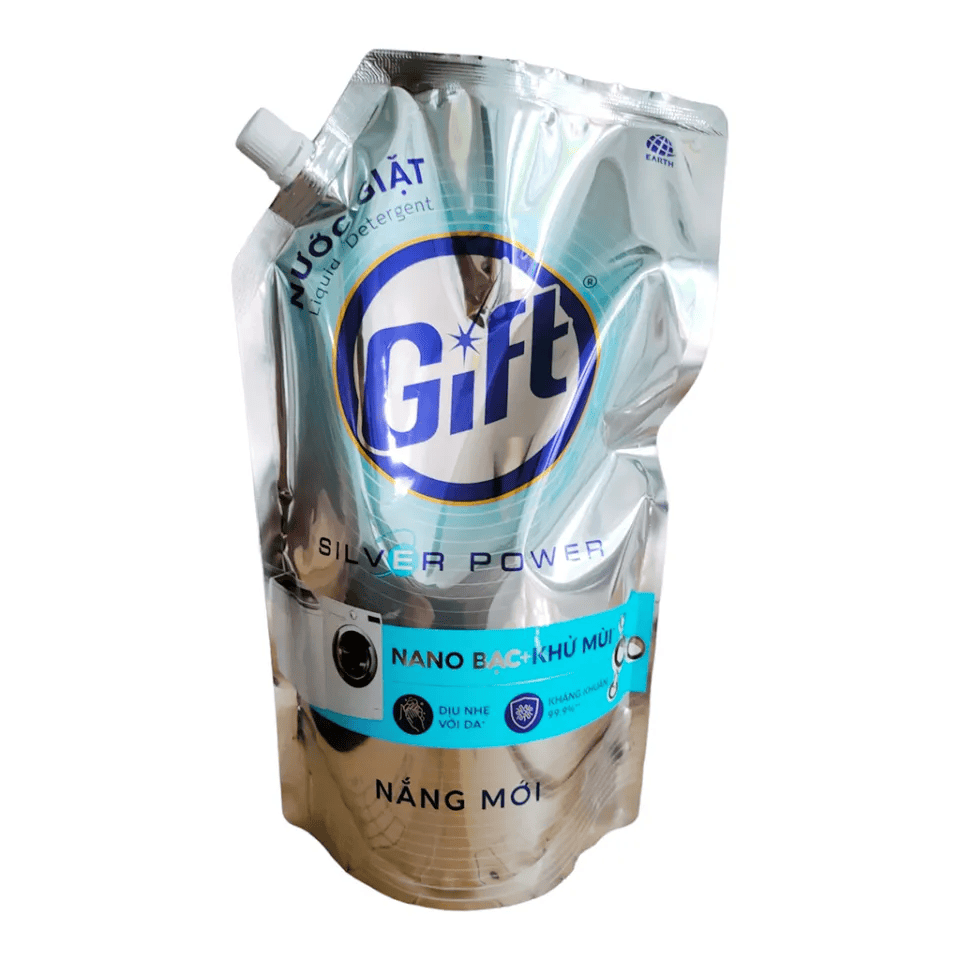 Nước giặt Gift Nắng Mới với công thức Silver Power với sức mạnh từ công nghệ khử mùi tích hợp trong hương thơm + Nano Bạc loại bỏ mùi khó chịu trên quần áo: mùi ẩm mốc, mùi mồ hôi, mùi đồ ăn, mùi khói bụi.